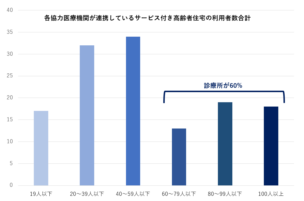 同じ「サービス付き高齢者向け住宅」の協力医療機関でも、連携している住宅数や入居規模には大きな差があります。