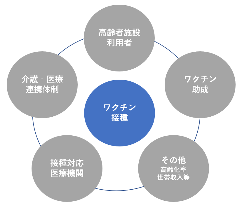 しかし、複数のデータを組み合わせることで、ワクチン接種を取り巻く地域の状況が見えてきます。