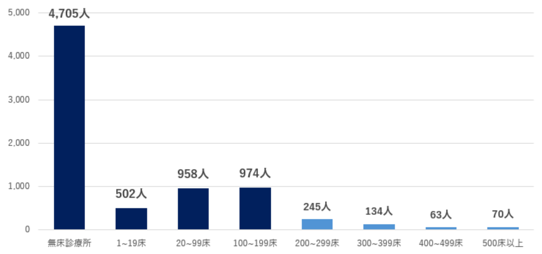 嘱託医も協力医療機関と同様に、中小規模施設に所属する医師が中心です。
